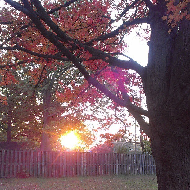 Behind one green tree looms a red one